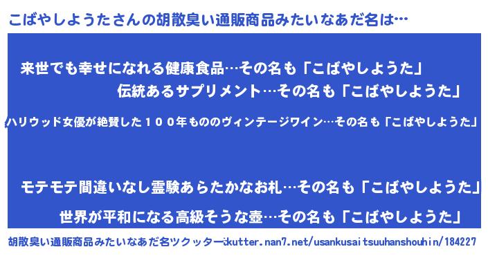 | 意味不明あだ名 | 『住所不定無職こばやしようた(8歳)』 |