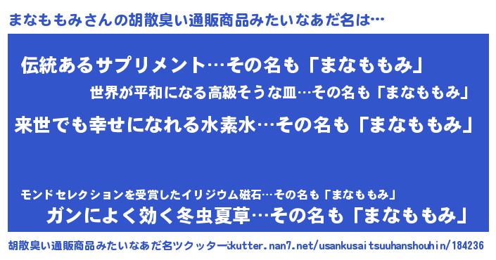 | 意味不明あだ名 | 『永久保存まなももみ』『自称まなももみ』 |