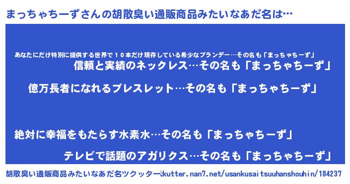 | 男性向けラノベタイトル風あだ名 | 『うちのまっちゃちーずが世界を掌握している!』 |