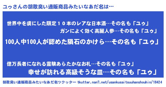 | 意味不明あだ名 | 『眠気覚ましガムユゥ味』『自称ユゥ』 |