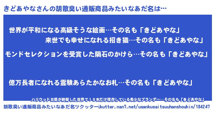| ヘコむあだ名 | 『レバニラ』『きどあやな(笑)』 |