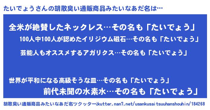 | 意味不明あだ名 | 『自称たいでょう』『永久保存たいでょう』 |