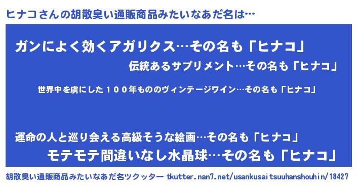 ヒナコさんの胡散臭い通販商品みたいなあだ名をツクッター!