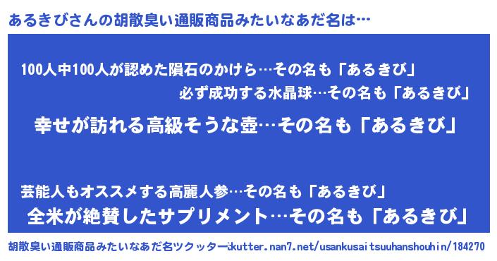 | 意味不明あだ名 | 『あるきびフォーエバー』 |