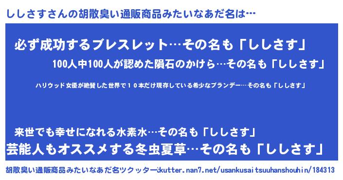 ししさすさんの胡散臭い通販商品みたいなあだ名をツクッター!