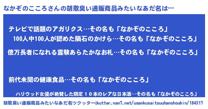 なかぞのこころさんの胡散臭い通販商品みたいなあだ名をツクッター!
