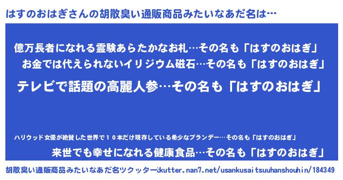 | 意味不明あだ名 | 『自称はすのおはぎ』 |