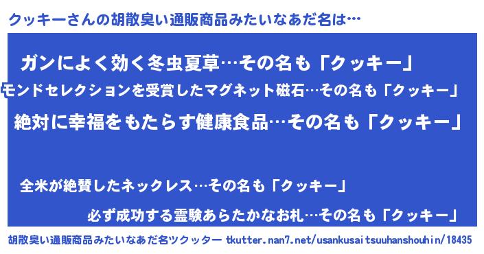 | 意味不明あだ名 | 『永久保存クッキー』『自称クッキー』 |