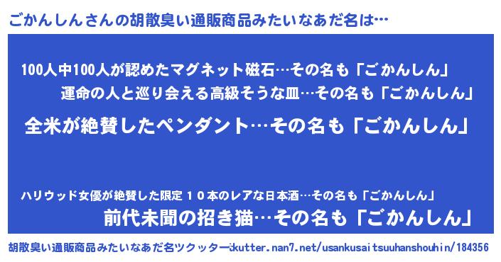| ヘコむあだ名 | 『ごかぷりん』『ごかんしん(笑)』 |