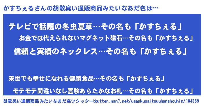 | 意味不明あだ名 | 『とにかく怪しいかすちぇる』 |