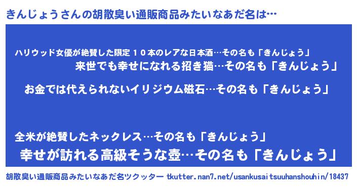 | ヘコむあだ名 | 『豆乳』『きんじょう(小並感)』 |