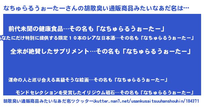 | ヘコむあだ名 | 『なちを』『なちゅらるうぉーたー(遠い目)』 |