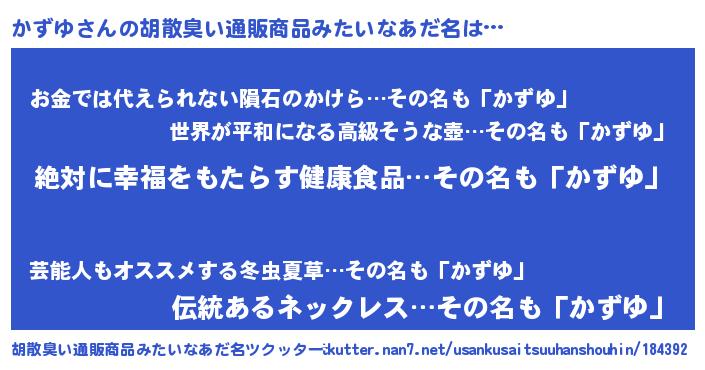 | 意味不明あだ名 | 『永久保存かずゆ』『なめこ科かずゆ属』 |