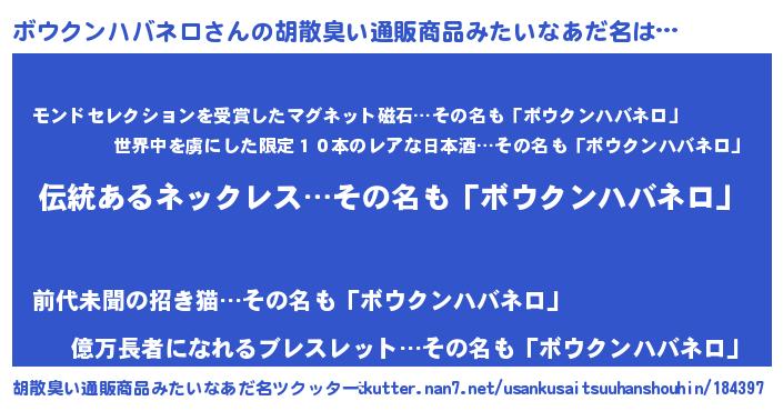 | 意味不明あだ名 | 『とにかく怪しいボウクンハバネロ』 |