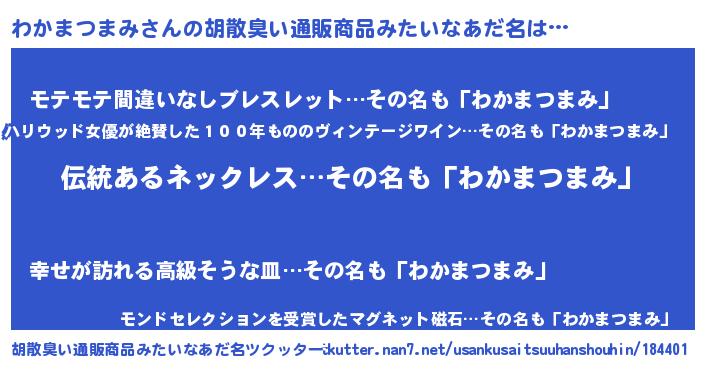 | 肩書あだ名 | 『わかまつまみ大尉』『わかまつまみ団長』 |