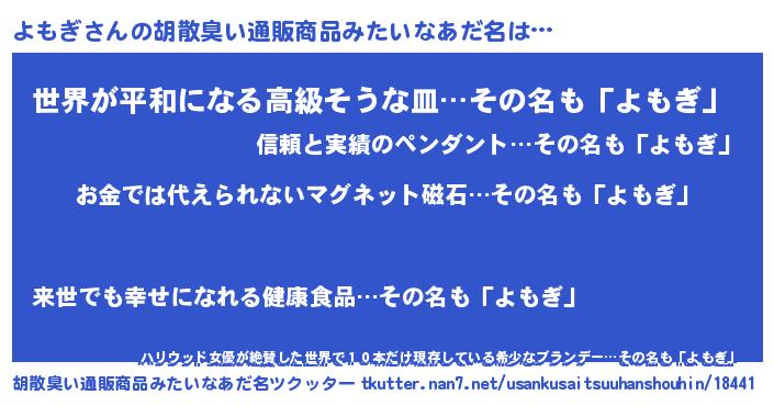 | 欧米人風あだ名 | 『トリンドルよもぎ』『ダニエルよもぎ』 |