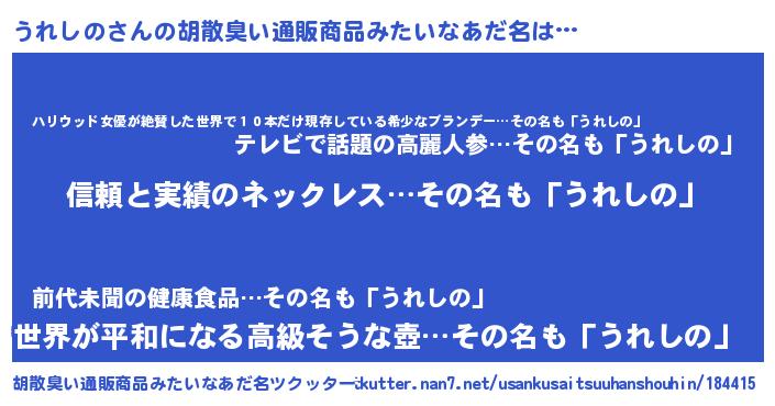 | 意味不明あだ名 | 『とにかく怪しいうれしの』 |
