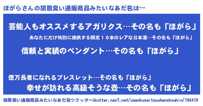意味不明あだ名 | 『しいたけ科ほがら属』『自称ほがら』 |