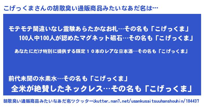 | 意味不明あだ名 | 『住所不定無職こげっくま(41歳)』 |