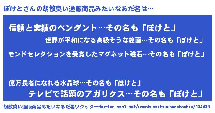 | 意味不明あだ名 | 『眠気覚ましガムぽけと味』『自称ぽけと』 |
