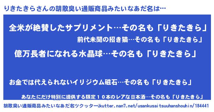 | 自動車の名前っぽいあだ名 | 『リキティマ』『ランリキギーニ』 |