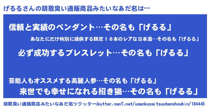 | ヘコむあだ名 | 『げるふぇ~』『げるっちょ』 |