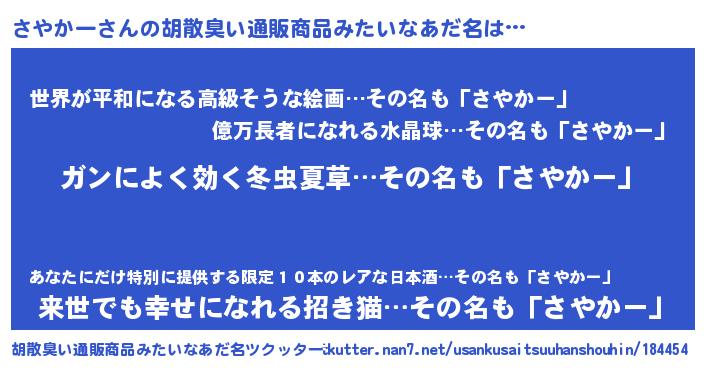 | 意味不明あだ名 | 『しいたけ科さやかー属』『自称さやかー』 |