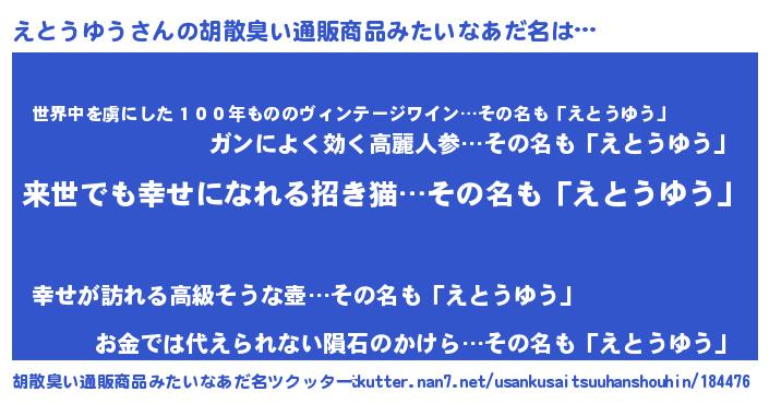 | 意味不明あだ名 | 『永久保存えとうゆう』『自称えとうゆう』 |