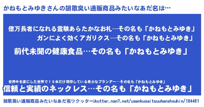 | 伝説のあだ名 | 『古文書に記された暗殺者かねもとみゆき』 |