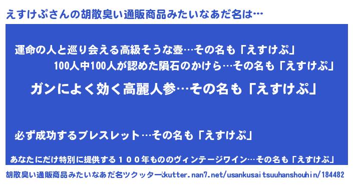 | 意味不明あだ名 | 『自称えすけぷ』『えすけぷフォーエバー』 |