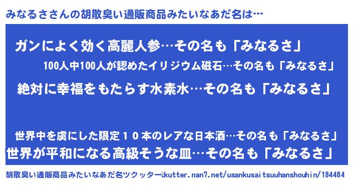 | 意味不明あだ名 | 『永久保存みなるさ』『自称みなるさ』 |