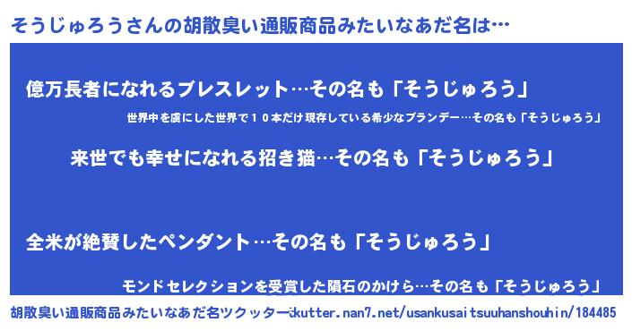 | ヘコむあだ名 | 『そうじゅろう(笑)』『そうにー』 |