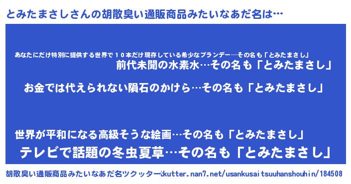 | ヘコむあだ名 | 『とみたまさし(震え声)』『なまこ酢』 |