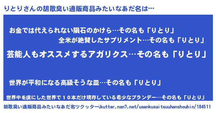 | 意味不明あだ名 | 『自称りとり』『眠気覚ましガムりとり味』 |