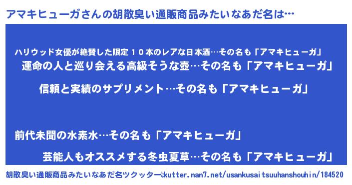| 意味不明あだ名 | 『とにかく怪しいアマキヒューガ』 |