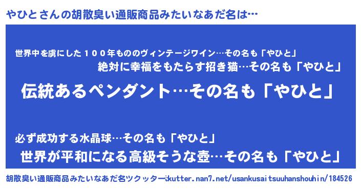 | ヘコむあだ名 | 『やひっぺ』『豆乳』『やひと(笑)』 |