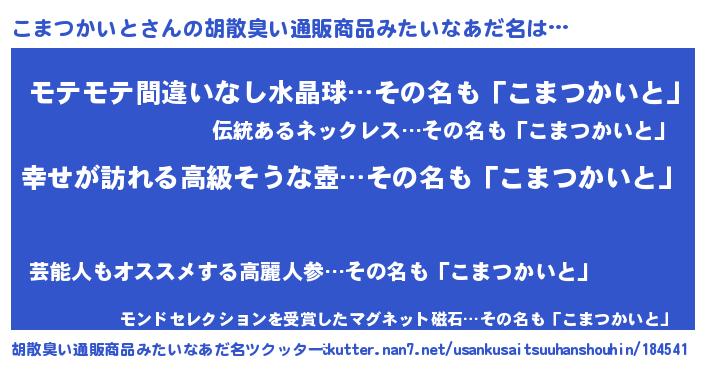 | 女子向けラノベタイトル風あだ名 | 『こまつかいとの雑貨屋さん』 |