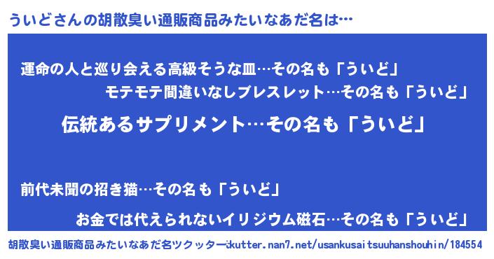 | ヘコむあだ名 | 『ういを』『酢こんぶ』『ういもー』 |