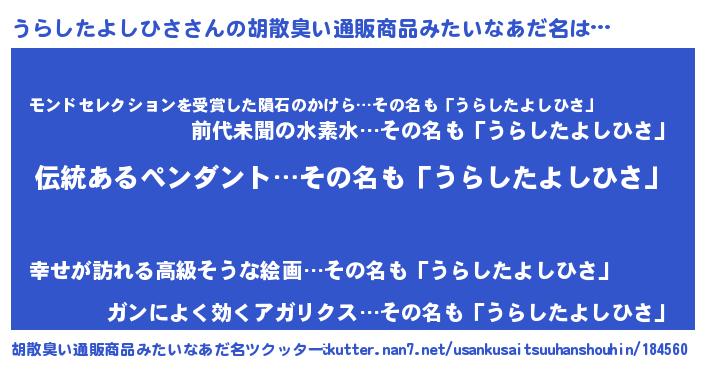 うらしたよしひささんの胡散臭い通販商品みたいなあだ名をツクッター!