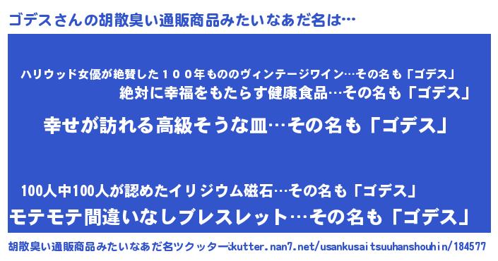 | 男性向けラノベタイトル風あだ名 | 『やはりゴデスの青春ラブコメはまちがっている 』 |