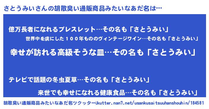 | 恥ずかしいあだ名 | 『さとっちょ』『プリティーさとうみい』 |