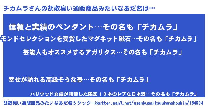 | ヒーロー風カッコイイあだ名 | 『究極戦士チカムラ』『魔戒騎士チカ』 |