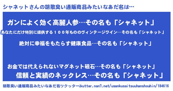 | ヘコむあだ名 | 『シャネット(笑)』『シャを』 |