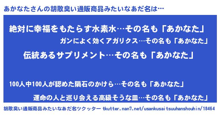 | 欧米人風あだ名 | 『ウサインあかなた』 |