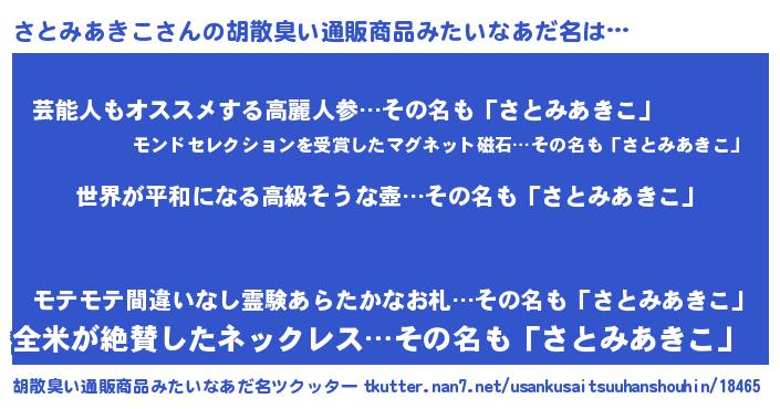 | 恥ずかしいあだ名 | 『さとっちょ』『サトミアキコデラックス』 |