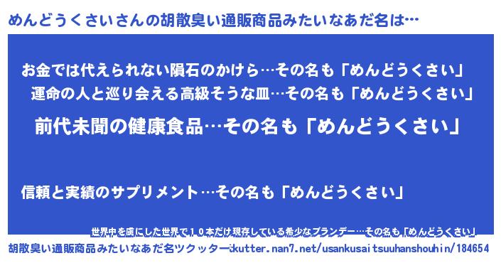 | ヒーロー風カッコイイあだ名 | 『ネオメンドウクサイ』『仮面メンダー』 |