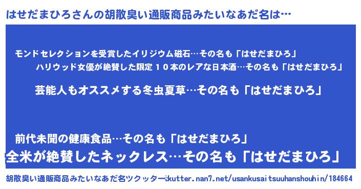 | ヘコむあだ名 | 『はせっぺ』『はせだまひろ(苦笑)』 |
