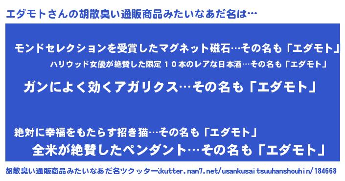 | ヘコむあだ名 | 『エダ太郎』『エダモト(苦笑)』 |