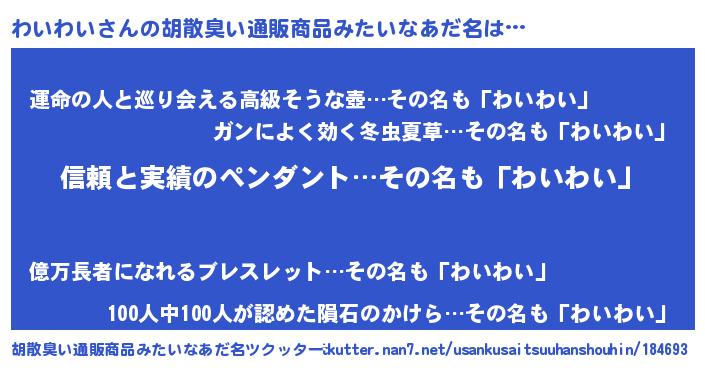 | ポケモン風あだ名 | 『ヒワイワイ』『ワイワダネ』 |