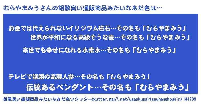 | 伝説のあだ名 | 『古より伝わる勇者むらやまみう』 |